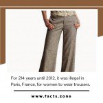 For 214 years until 2012, it was illegal in Paris, France, for women to wear trousers