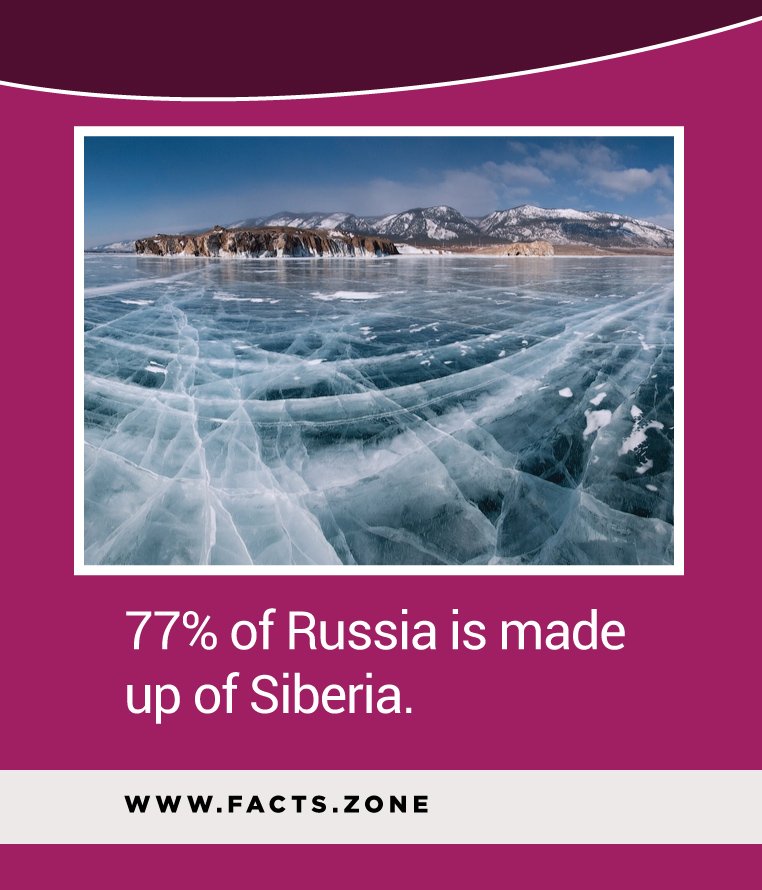 in General 77% of Russia is made up of Siberia by Web Desk August 13, 2016, 3:46 pm 99 Views 77% of Russia is made up of Siberia. Leave a Reply Cancel replyYour email address will not be published. Required fields are marked *Comment * Name * Email * Website By using this form you agree with the storage and handling of your data by this website. *