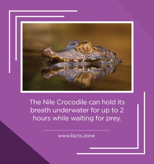 The Nile Crocodile can hold its breath underwater for up to 2 hours while waiting for prey