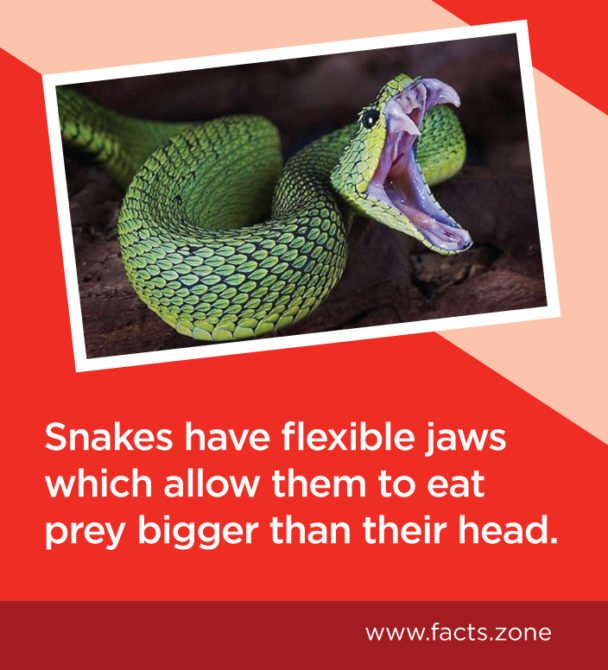 Snakes have flexible jaws which allow them to eat prey bigger than their head