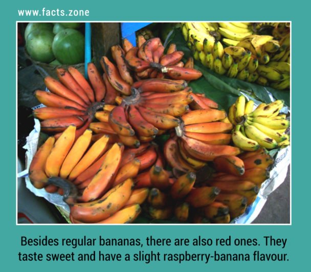 Besides regular bananas, there are also red ones. They taste sweet and have a slight raspberry-banana flavour.