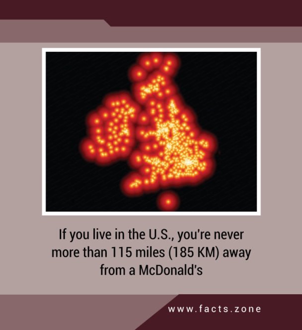 If you live in the U.S., you’re never more than 115 miles (185 KM) away from a McDonald’s