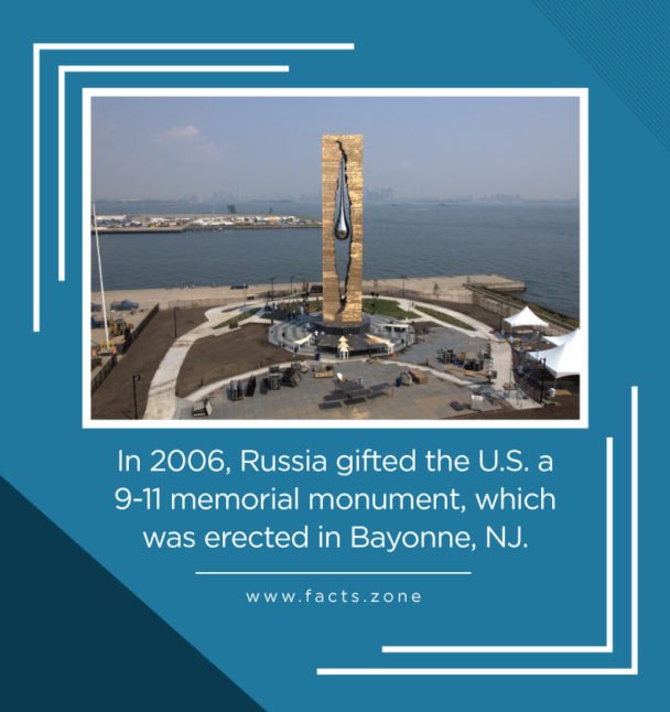 In 2006, Russia gifted the U.S. a 9-11 memorial monument, which was erected in Bayonne, NJ