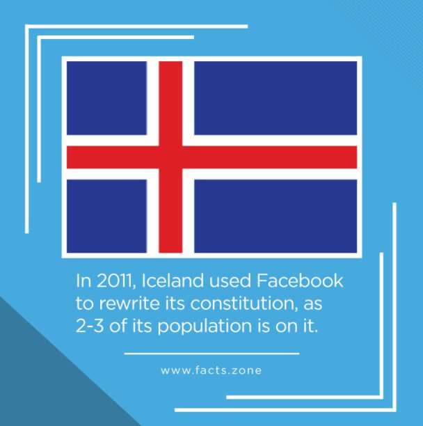 In 2011, Iceland used Facebook to rewrite its constitution, as 2-3 of its population is on it