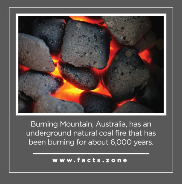 Burning Mountain, Australia, has an underground natural coal fire that has been burning for about 6,000 years
