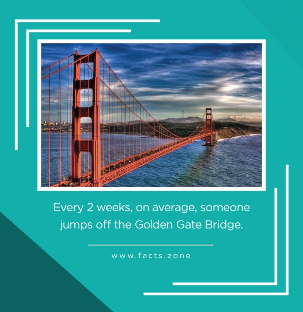 Every 2 weeks, on average, someone jumps off the Golden Gate Bridge