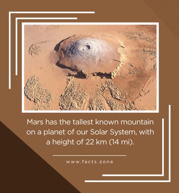 Mars has the tallest known mountain on a planet of our Solar System, with a height of 22 km (14 mi)