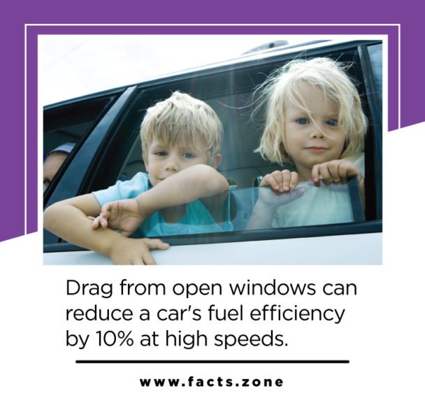 Drag from open windows can reduce a car’s fuel efficiency by 10% at high speeds