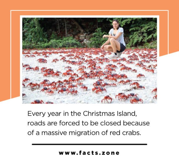 Every year in the Christmas Island, roads are forced to be closed because of a massive migration of red crabs
