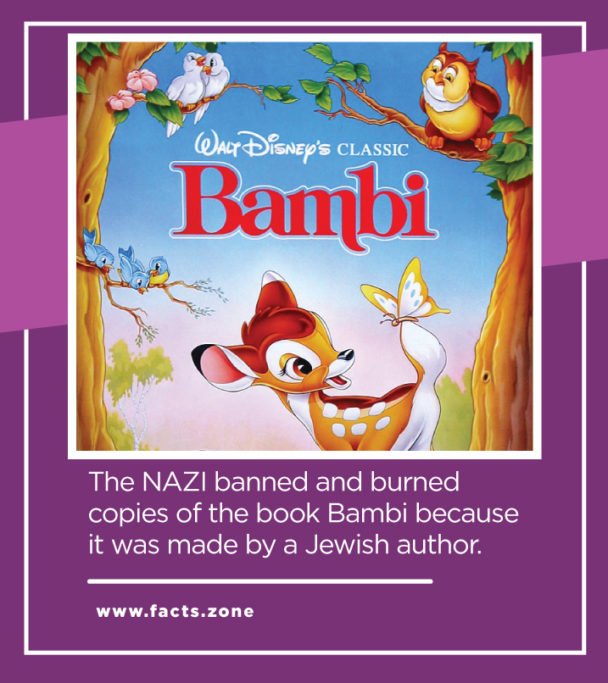 The NAZI banned and burned copies of the book Bambi because it was made by a Jewish author