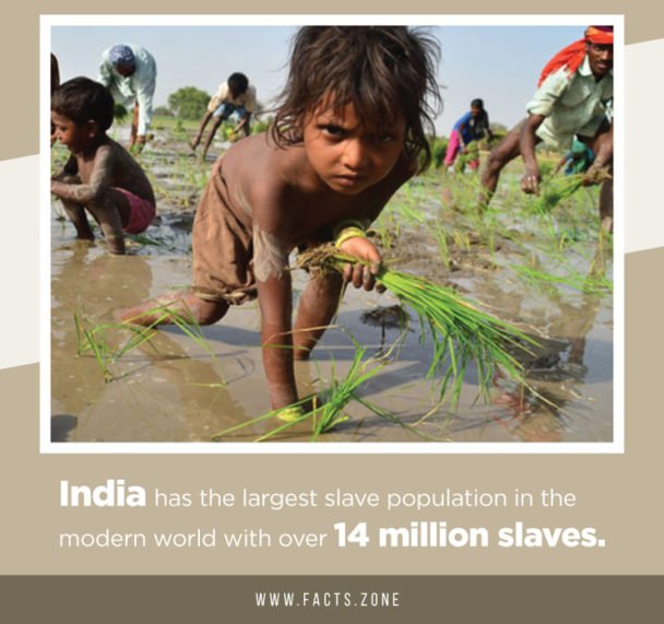India has the largest slave population in the modern world with over 14 million slaves