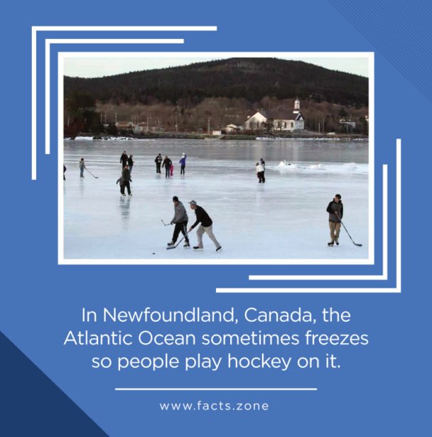 In Newfoundland, Canada, the Atlantic Ocean sometimes freezes so people play hockey on it