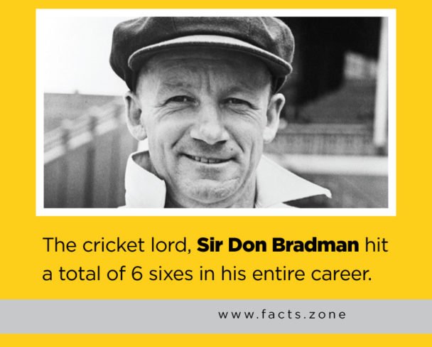The cricket lord, Sir Don Bradman hit a total of 6 sixes in his entire career