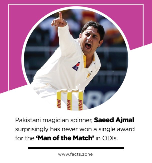 Pakistani magician spinner, Saeed Ajmal surprisingly has never won a single award for the ‘Man of the Match’ in ODIs