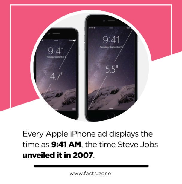 Every Apple iPhone ad displays the time as 9,41 AM, the time Steve Jobs unveiled it in 2007