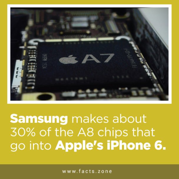 Samsung makes about 30% of the A8 chips that go into Apple’s iPhone 6