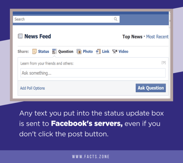 Any text you put into the status update box is sent to Facebook’s servers, even if you don’t click the post button