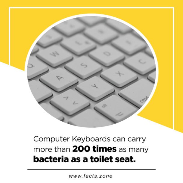 Computer Keyboards can carry more than 200 times as many bacteria as a toilet seat